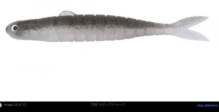 5インチ 4本入り 《横方向に泳ぐ しなやかにロールする 逃走する》 ヴァラップミノーは、襲われるベイトフィッシュの挙動をあざとく演じ切る。ワッキーセッティングでは身をクネらせながら斜め方向へと泳ぎ進み、「護岸や岩盤をついばむ」「追われて岸に追い込まれる」といった演出を。ジグヘッドリグによるミドストでは、しなやかなロールアクションからの、リーリングによって身を左右に振って逃走する動きへと瞬時に切り替わる。その多彩かつライブリーな表現力で、バスの目にまぎれもない魚と映る。